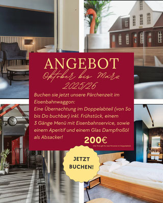 Egal, ob du bei uns im Restaurant den authentischen Eisenbahnservice genießt, in unseren umgebauten und frisch renovierten Eisenbahnwaggons einzigartige Hotelübernachtungen erlebst oder mit deiner Familie und deinen Freunden in unserem Festsaal ausgelassen feierst – unser Ziel ist es, dass sich jeder bei uns pudelwohl fühlt.